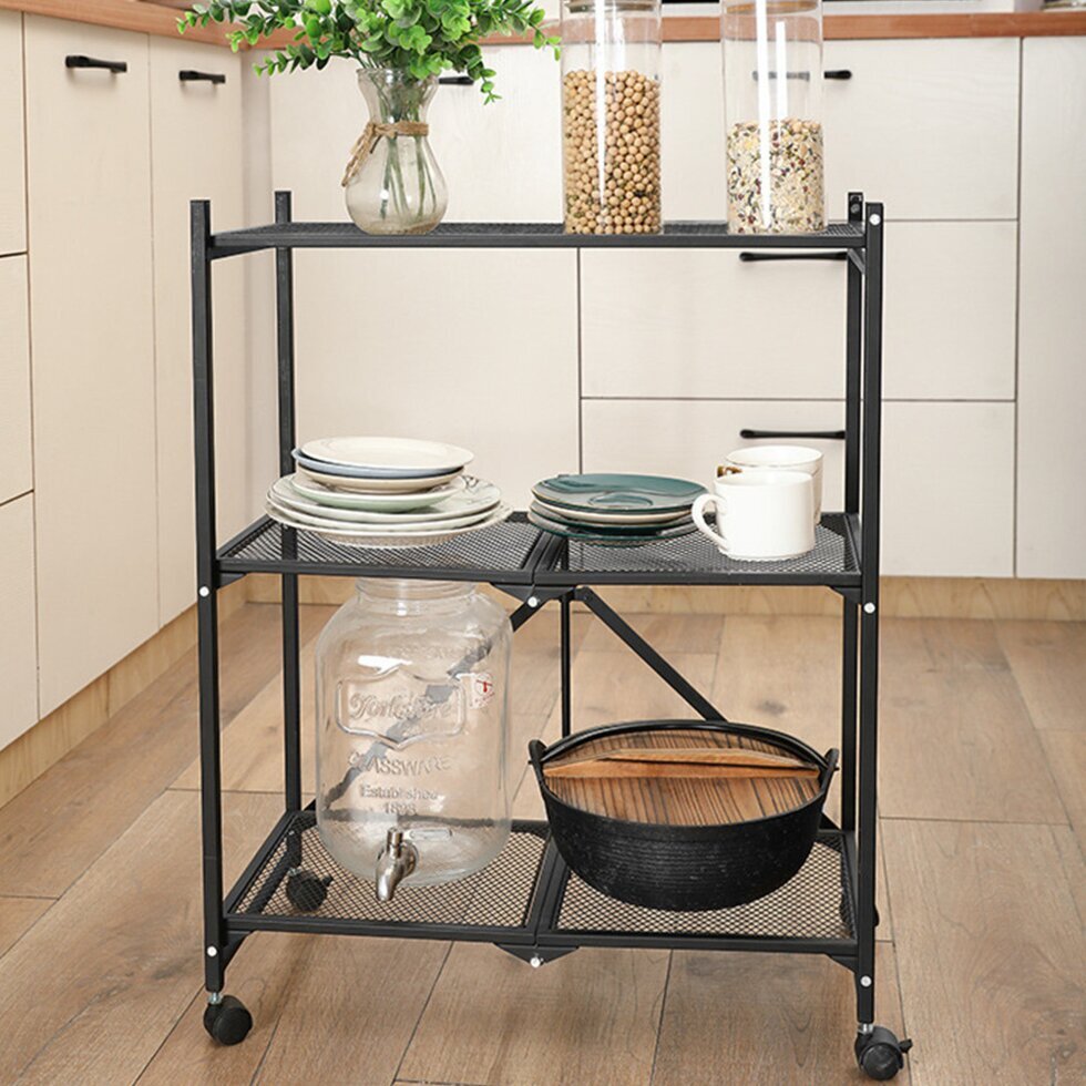 3-х уровневая многофункциональная тележка для хранения, складная сетка Провод, роликовая кухонная полка для