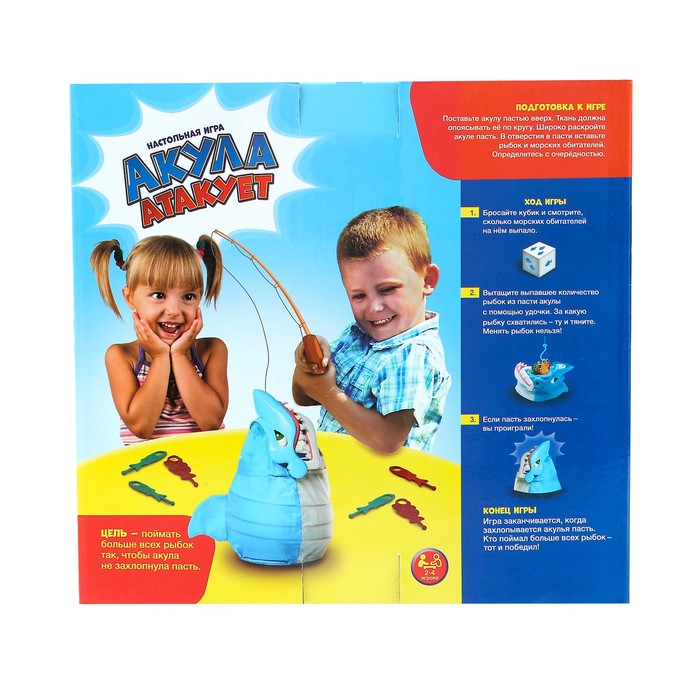 • Комплектация акула; 12 морских обитателей; 2 удочки; кубик