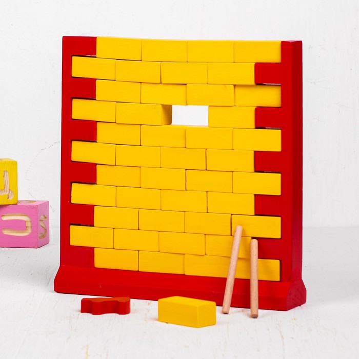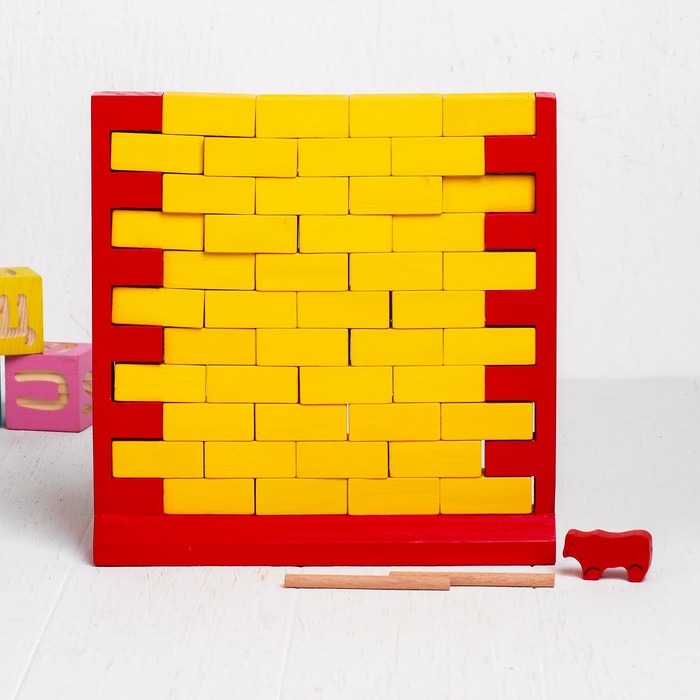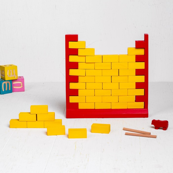 - Комплектация 2 палочки; фигурка медведя; основа стены; 44 кирпича