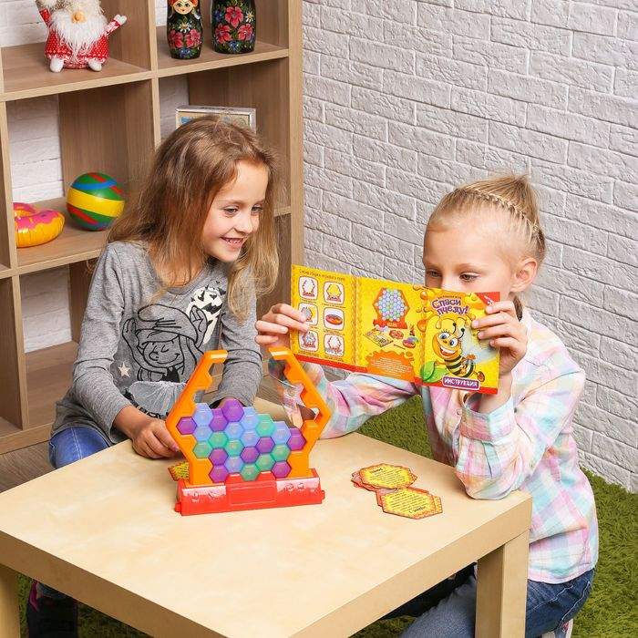 - Комплектация игровое поле, пчела, 2 палочки, рулетка, 2 поля для рулетки, игровые карточки, инструкция