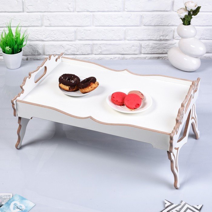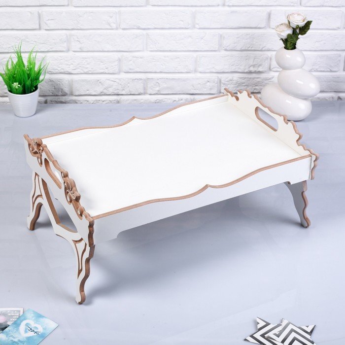 Столик-поднос для завтрака складной "Прованс", 5237см, с ручками, белый
