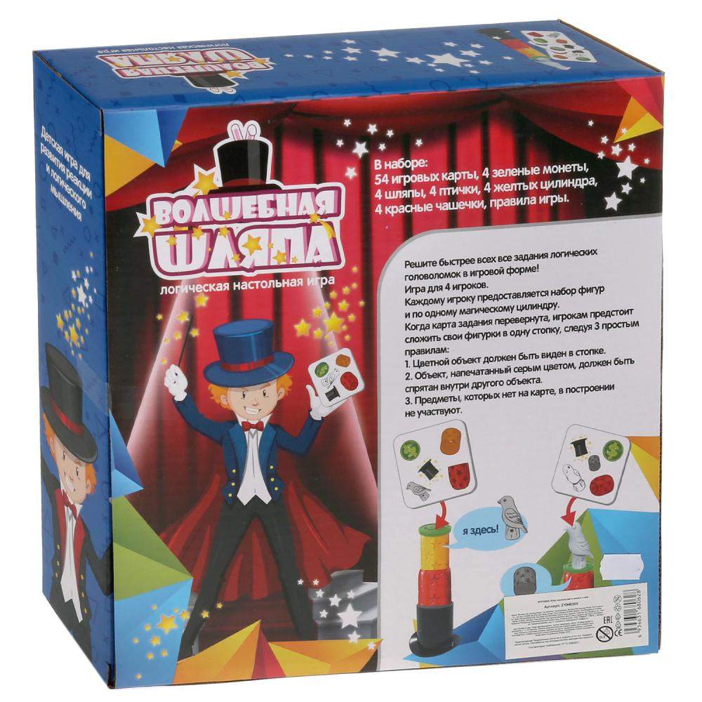 - Комплектация 54 карты; 8 цилиндров; 4 шляпы; 4 голубя; 4 диска; правила игры