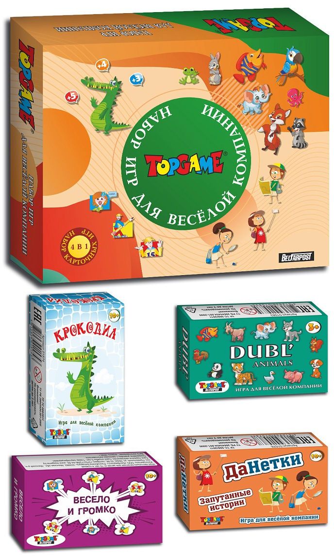Набор игр для веселой компании "Крокодил", "Дубль.Животные", "Весело и громко", "ДаНетки"