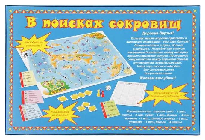 - Комплектация игровое поле; карты - 2 шт; фишки - 4 шт; кубик; игровые деньги