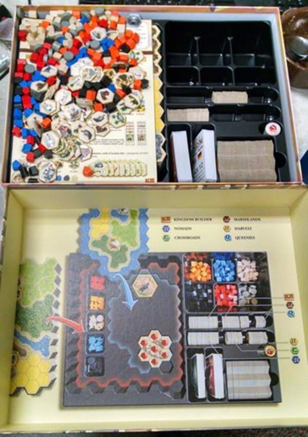 - Комплектация Базовая игра Kingdom Builder, Дополнение Nomad, Дополнение Crossroads, Дополнение Marshlands, Дополнение Harvest, Мини-дополнения Capitols, Caves, the Island.