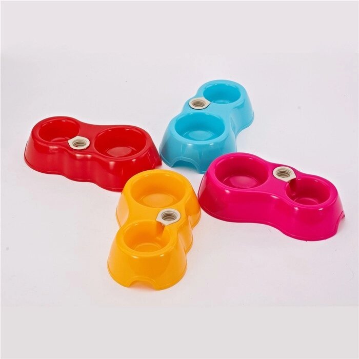 Миска двойная с креплением для бутылки, 150/300 мл, 29,5 х 15 см, микс цветов