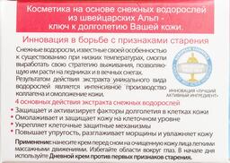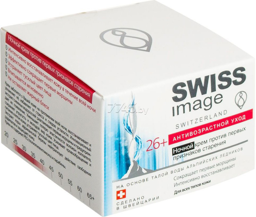 Крем ночной SWISS IMAGE Антивозрастной уход против первых признаков старения 26+ 50 мл восстанавливает кожу, избавляет от стресса и следов усталости. Инновационный экстракт снежных водорослей разглаживает первые морщины и предупреждает их появление. Уменьшает потерю эластичности волокон коллагена, сохраняет упругость и молодой вид кожи. Усиливает кровообращение и питание клеток кожи, устраняет тусклый цвет лица. Экстракт коры африканской березы нейтрализует действие свободных радикалов и защищает кожу. Натуральный комплекс, содержащийся в креме, существенно повышает уровень влаги в коже и обеспечивает оптимальный уровень питания и увлажнения на 24 часа. Восстанавливающий ночной крем не содержит PEG (полиэтиленгликоль) и парабенов.