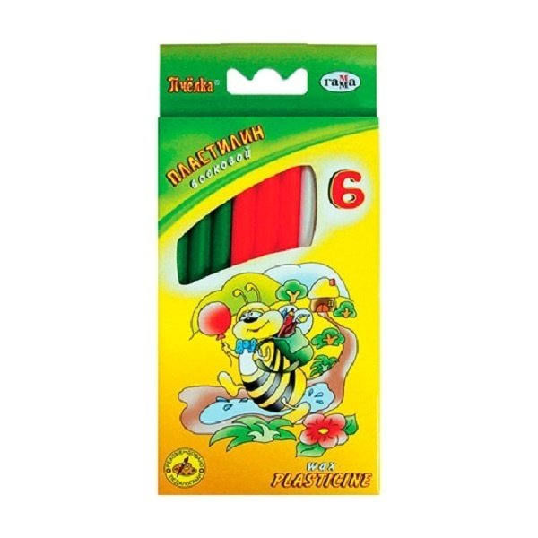 Пластилин восковой Пчелка Гамма стек, 73 г 6 цветов (280029H)
