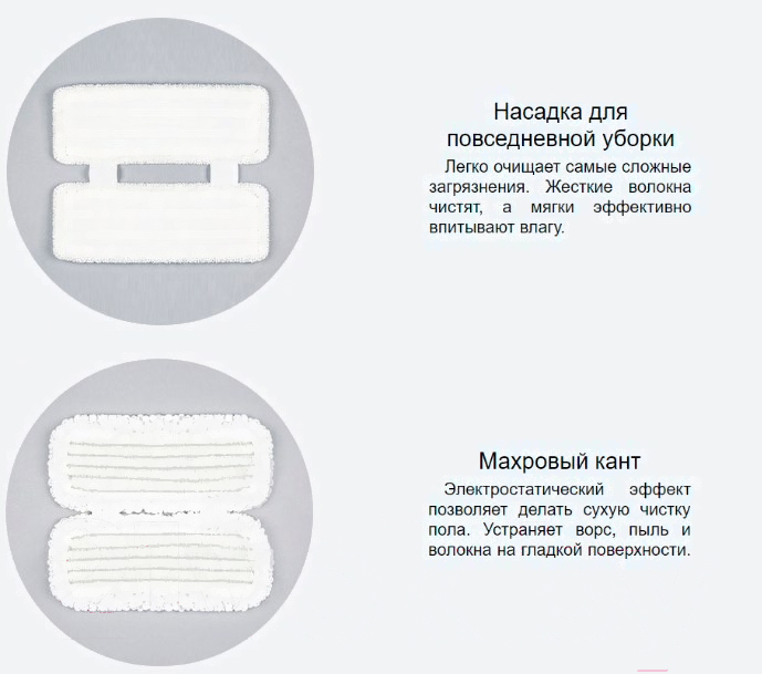 • В комплекте насадка для повседневной уборки, насадка с махровым кантом, одноразовая насадка (10 шт.)