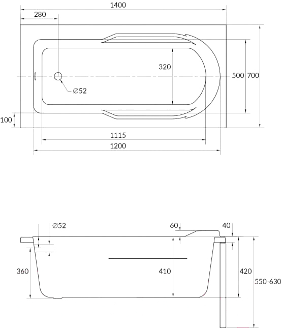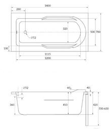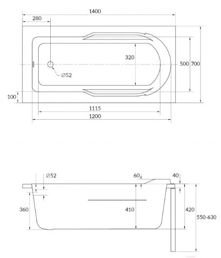 • Особенность модели подлокотники литые, подголовник литой, площадка под установку смесителя