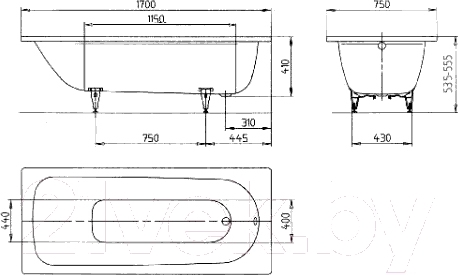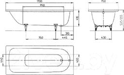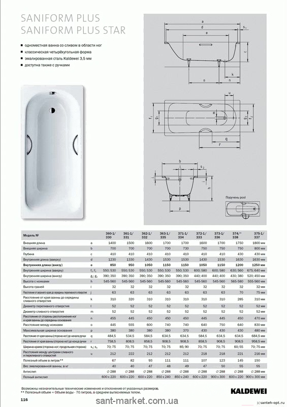 Ванна стальная Kaldewei Saniform Plus 373-1 170x75; Размещение: встраиваемая; Гидромассаж: нет; Объем: 193 л; Толщина стенок: 3.5;3.5 мм