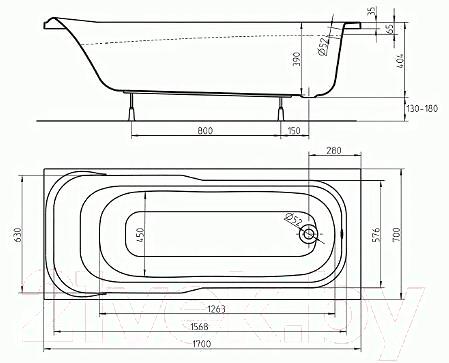 Ванна акриловая Kolo Sensa 170x70; Размещение: встраиваемая; Гидромассаж: нет; Объем: 165 л; Ножки в комплекте: есть; Толщина стенок: 5;5 мм