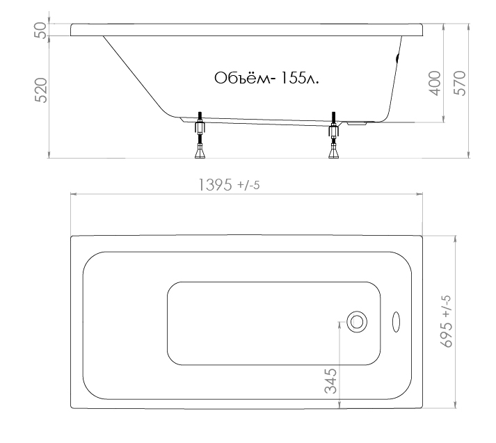 Ванна акриловая Triton Ультра 140x70 (с ножками)