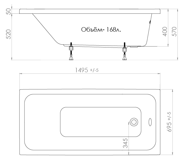 Ванна акриловая Triton Ультра 150x70 (с ножками)