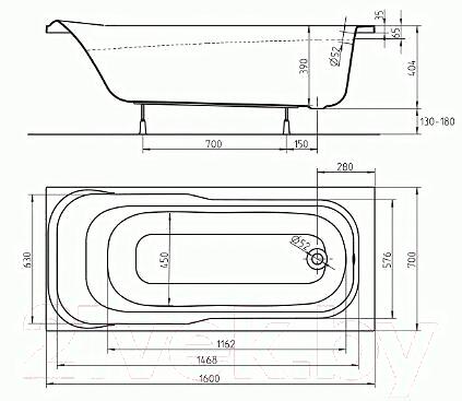 Ванна акриловая Kolo Sensa 160x70; Размещение: встраиваемая; Гидромассаж: нет; Особенность модели: подголовник литой; Объем: 152 л; Ножки в комплекте: есть