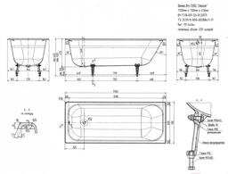 Ванна чугунная Универсал Элегия 170x70 (1-й сорт, с ножками)