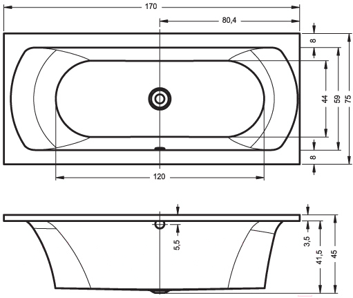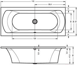 • Совместимые модели панель фронтальная (P170), панель боковая (P075), подголовник (AH13), слив-перелив (560100396), ручки (AG02110, AG02115, AG03120), сифон (560100210, 560100310, 560100360)