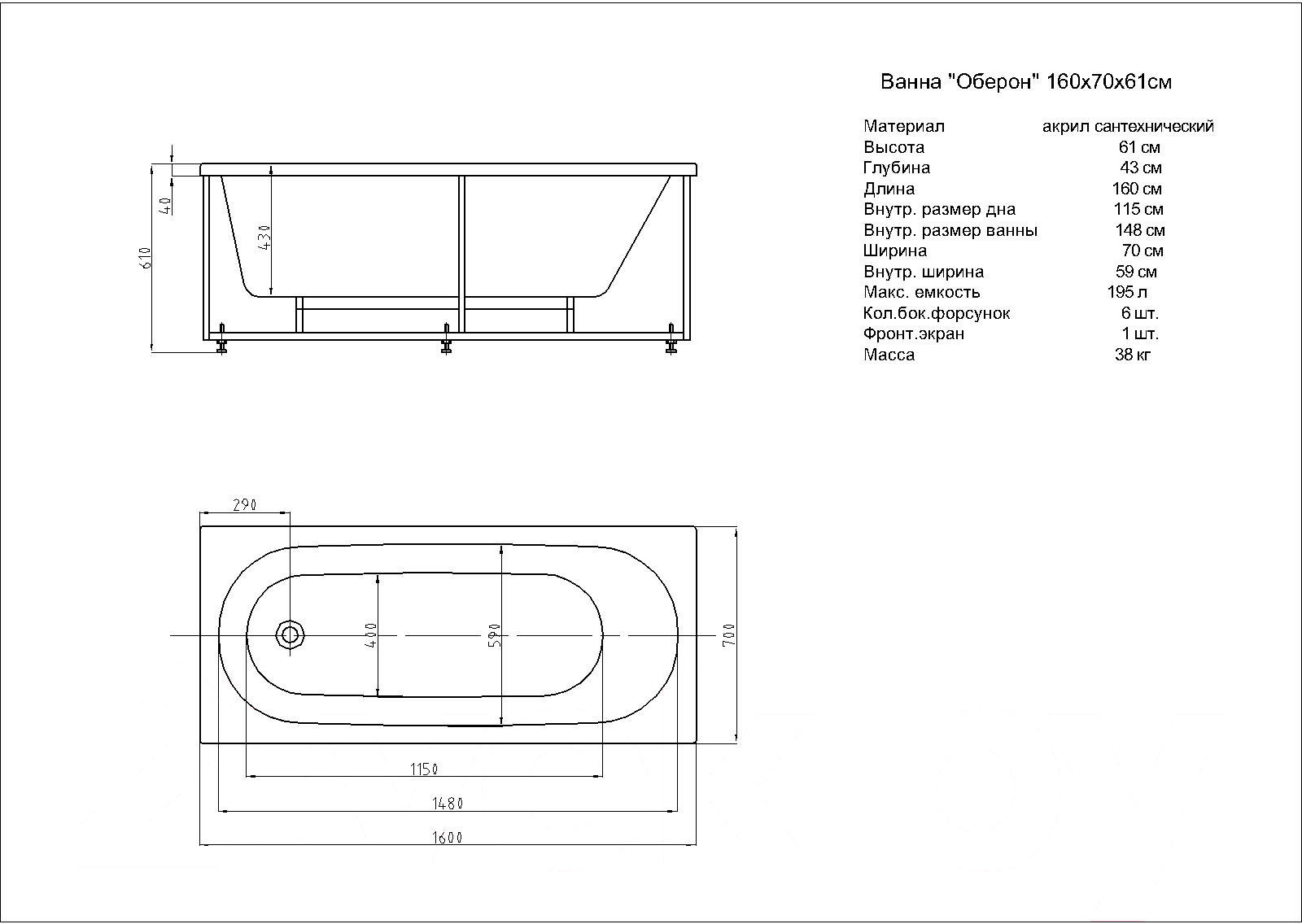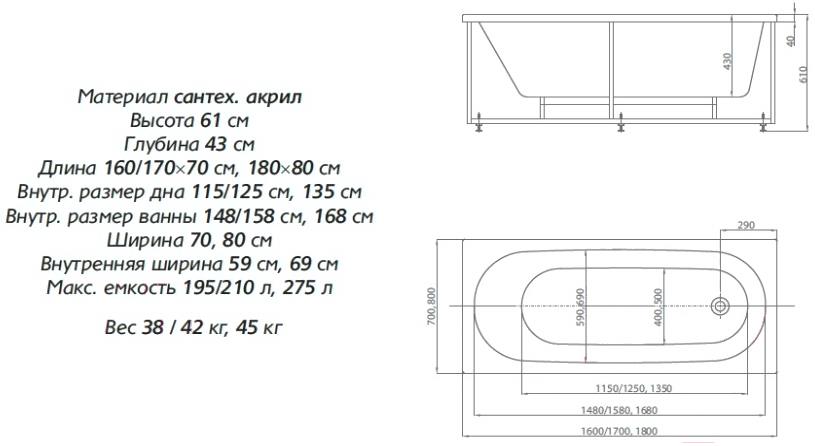 • Комплект поставки ванна, панель фронтальная, каркас