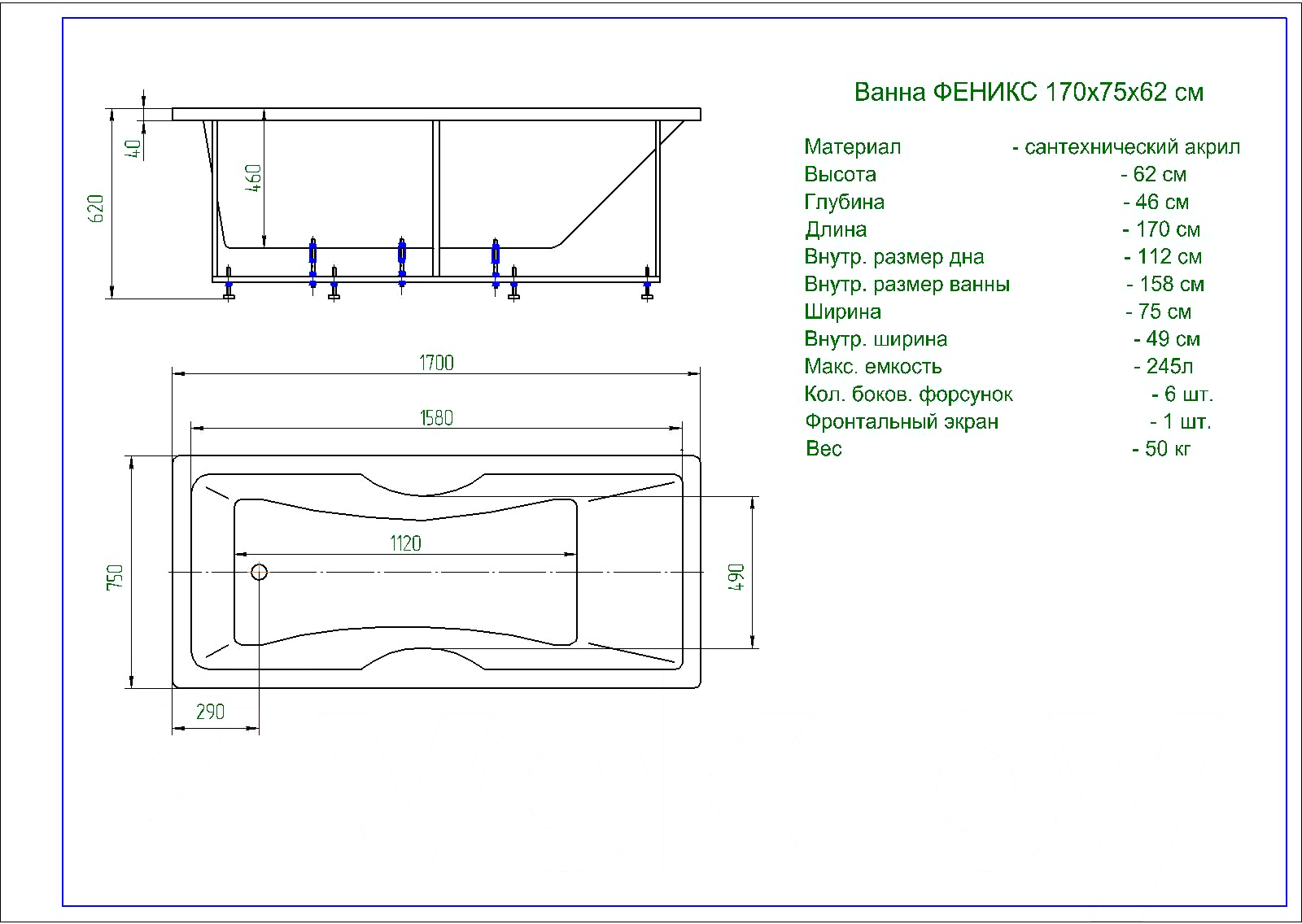 • Дополнительная комплектация ванна, каркас, слив-перелив