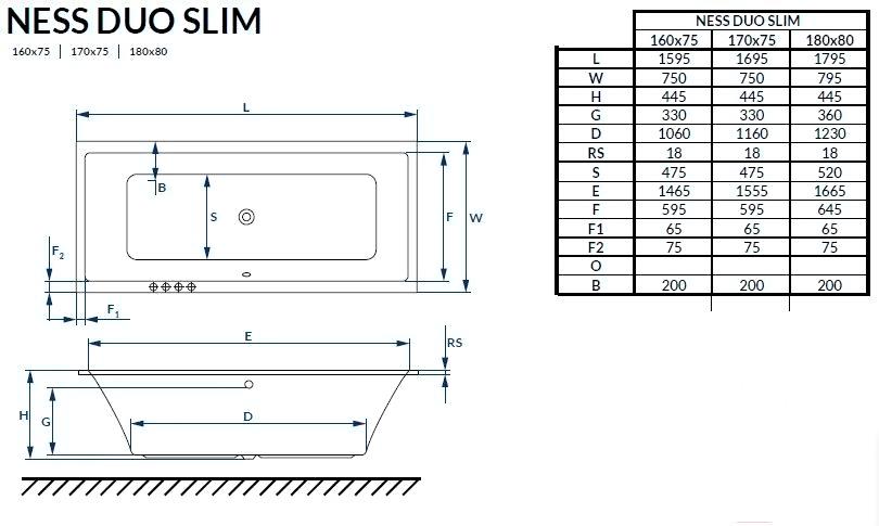 Ванна акриловая Excellent Ness Duo Slim 170x75