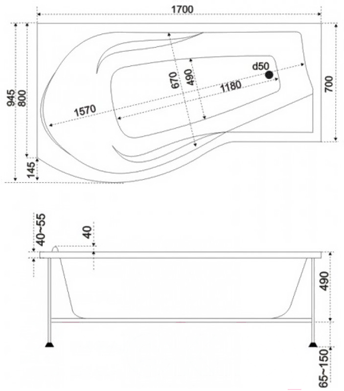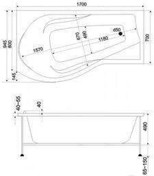 • Комплект поставки ванна, каркас, слив-перелив (полуавтомат)