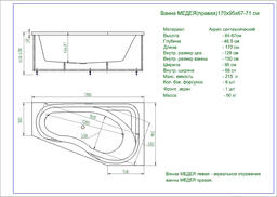 Ванна акриловая Aquatek Медея 170x95 R (2 экрана и каркас)