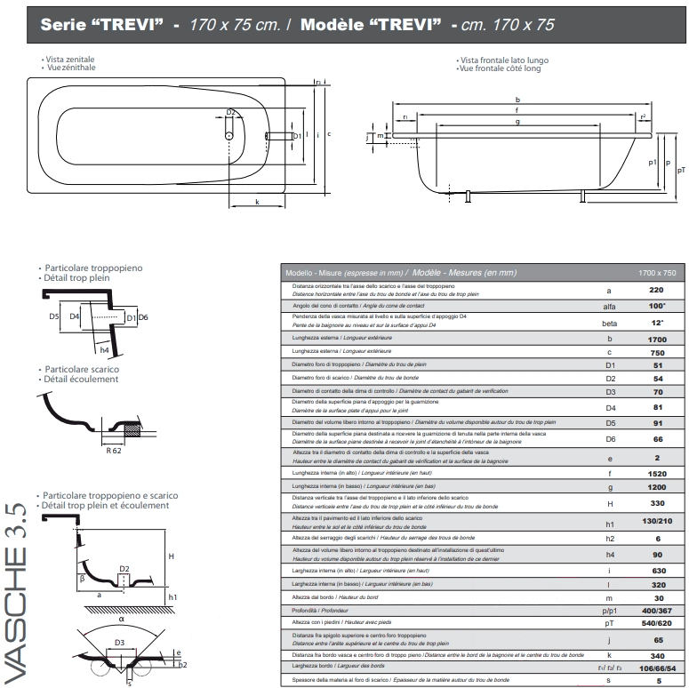 • Комплект поставки ванна, ручки (латунь, хромированные)