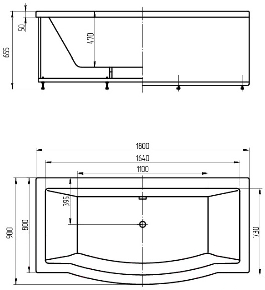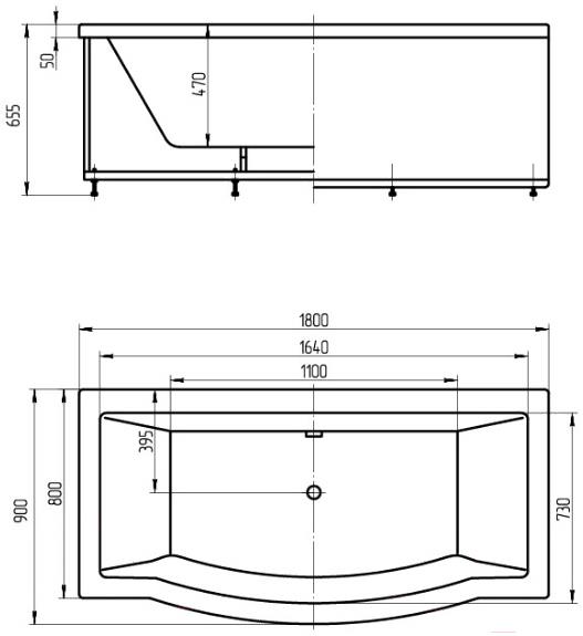 Ванна акриловая Aquatek Гелиос 180x90 (с гидромассажем и экраном)