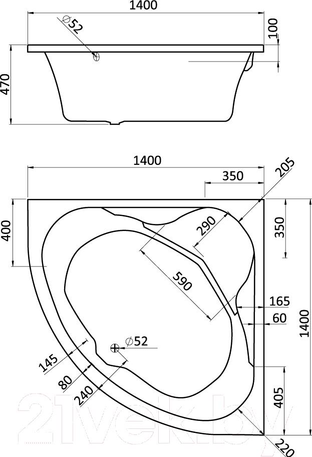 Ванна акриловая Santek Карибы 140x140 Комфорт Плюс (1WH112402)