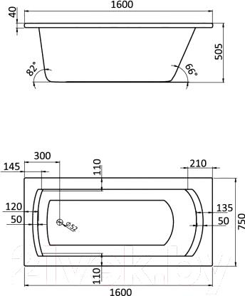 Ванна акриловая Santek Монако XL 160x75 Комфорт (1WH112380)