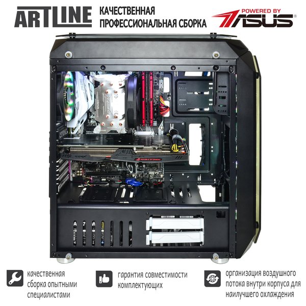 Дополнительные преимущества4 RGB вентилятора, управляются пультом управления, блок питания с сертификацией 80+ Bronze, Модульный блок питания, Новейшая видеокарта Nvidia GeForce RTX, Панели из закаленного стекла 4мм, Сверхбыстрый современный SSD-диск с интерфейсом NVME