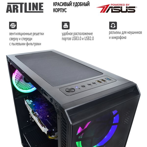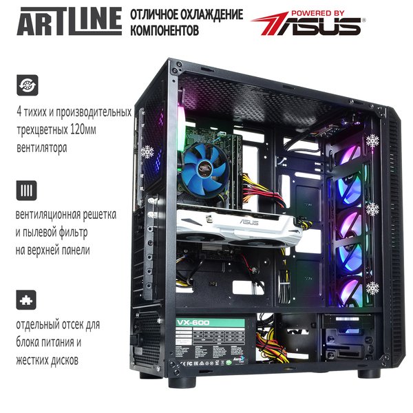 Дополнительные преимуществаВысокопроизводительный SSD форм-фактора M.2, Прозрачные передняя и боковая панели, пылевой фильтр на верхней панели, Четыре 3-х цветных вентилятора