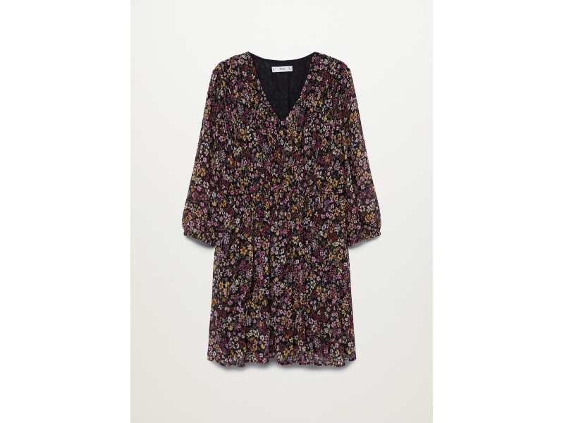 • Дополнительная информация Принтованное платье с плиссировкой. Набивной рисунок. Короткий фасон. Расклешенный фасон. Длинные рукава. Эластичные манжеты. Подкладка.