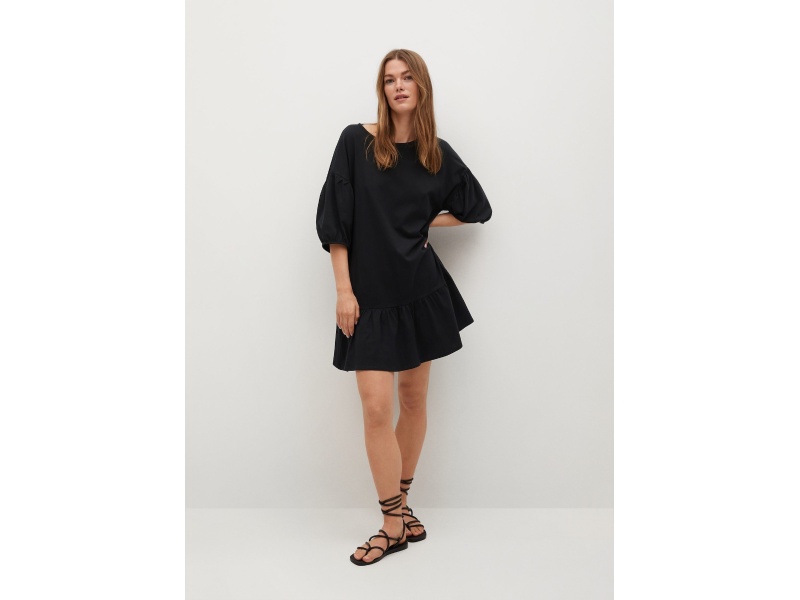 • Дополнительная информация Хлопковое платье с рукавами-фонариками. Спущенные плечи. Эластичные края. Внизу волан.