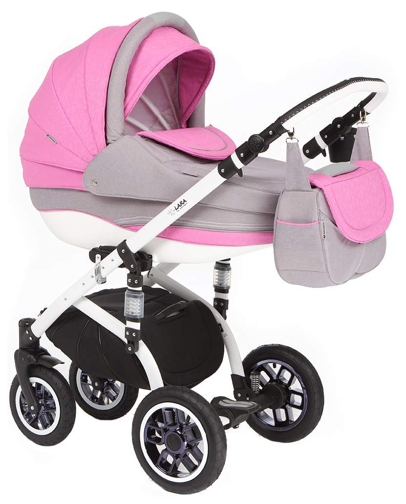 Коляска 2 в 1 Adamex Lara (серый, розовый принт )