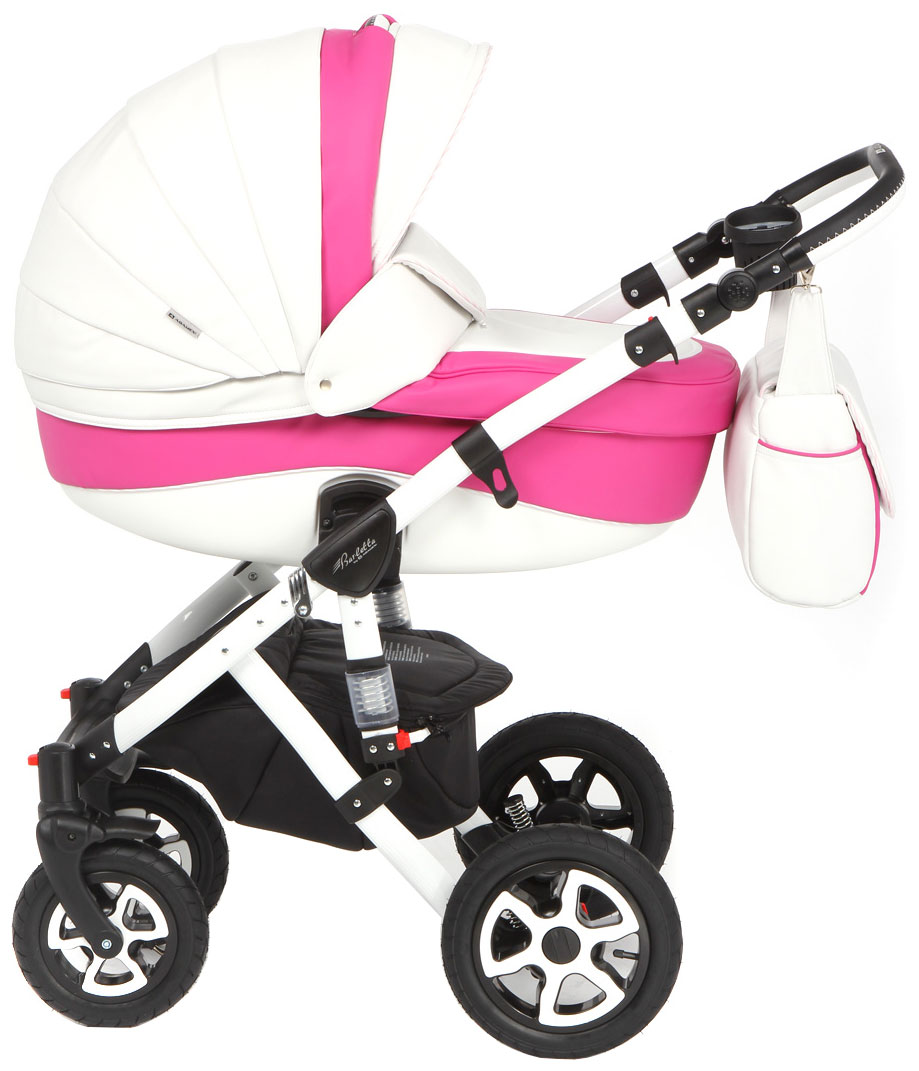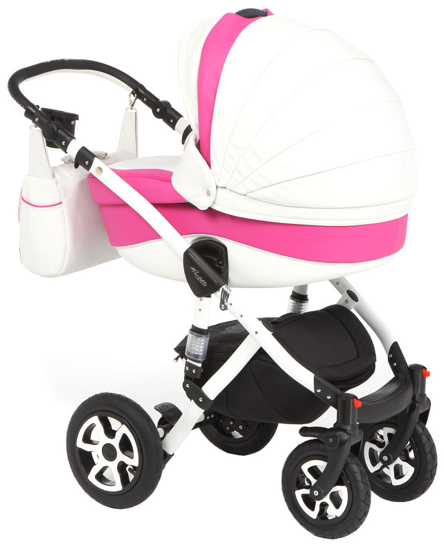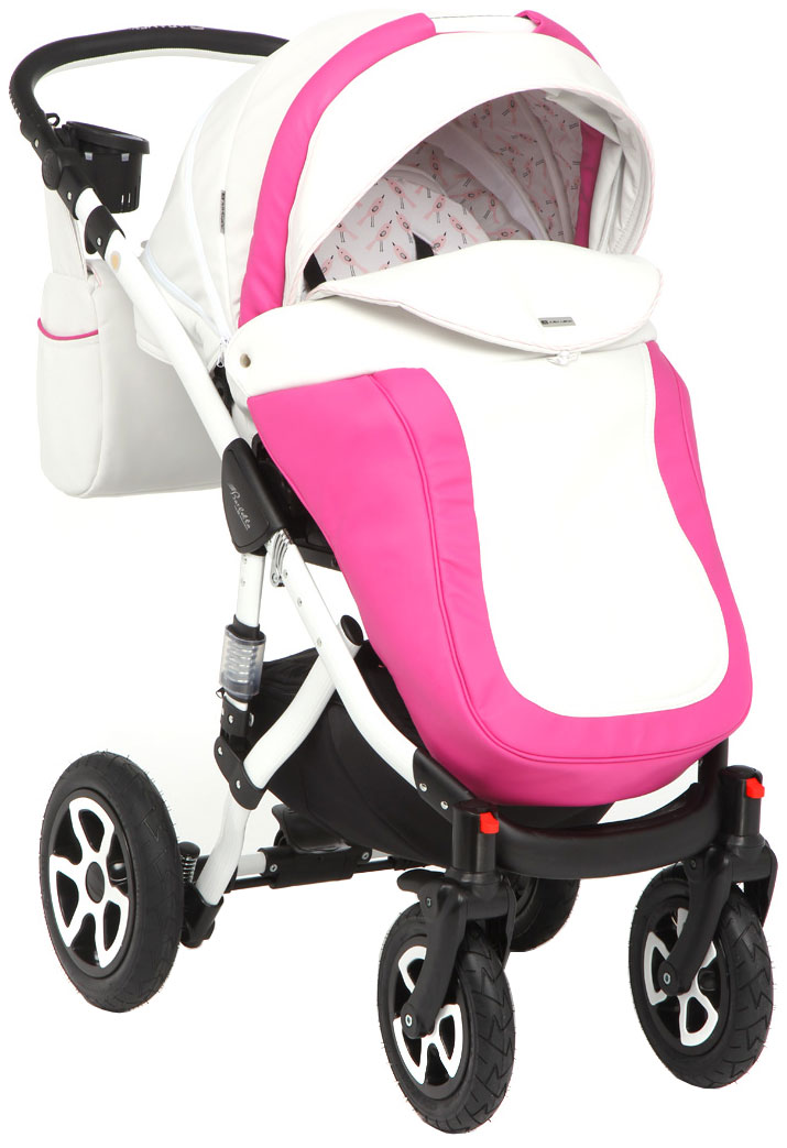Коляска 2 в 1 Adamex Barletta (белый, малиновый 356S)