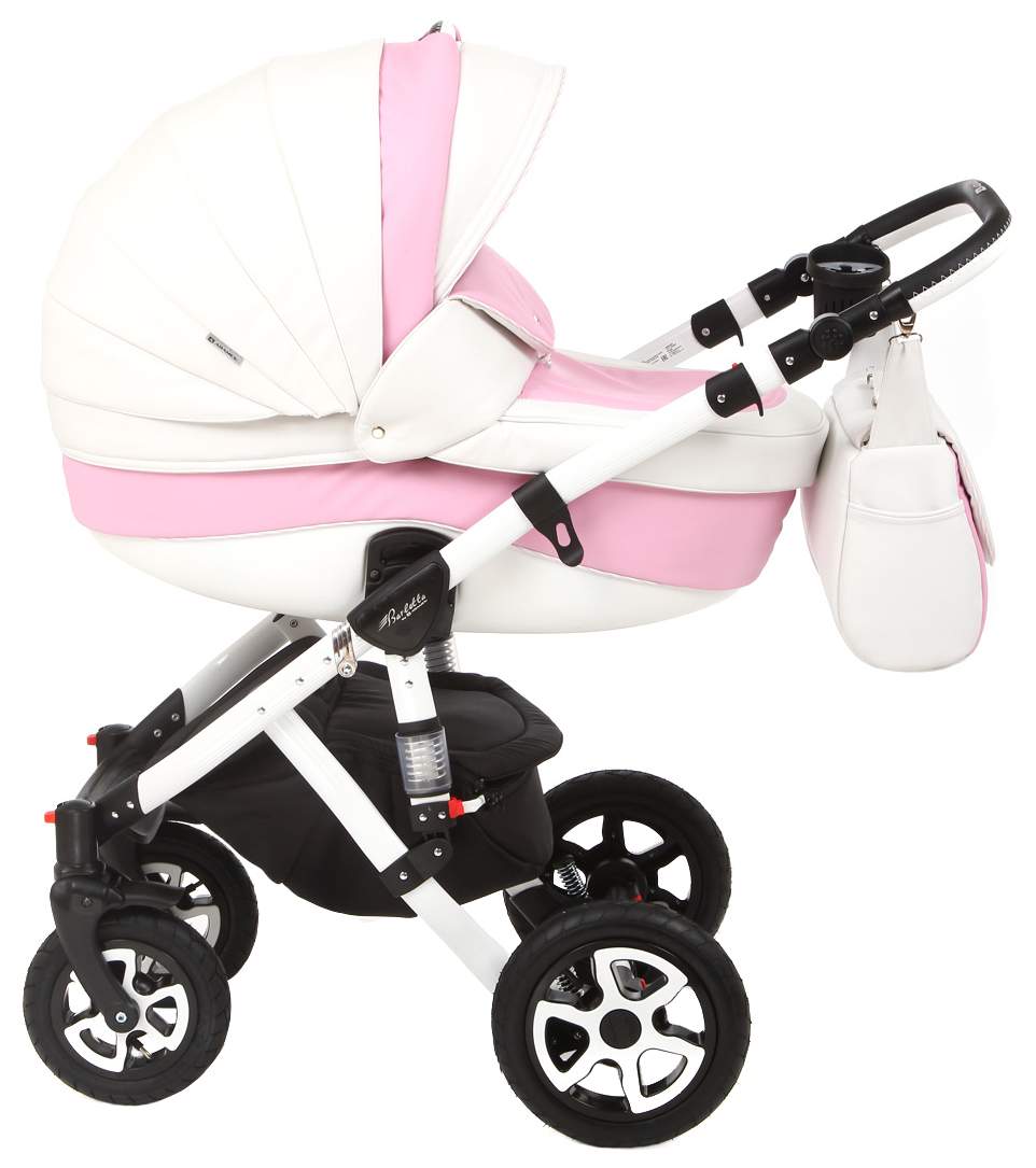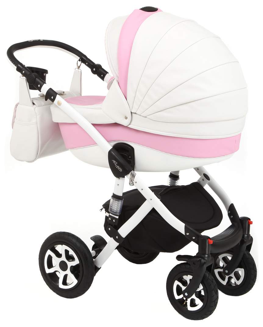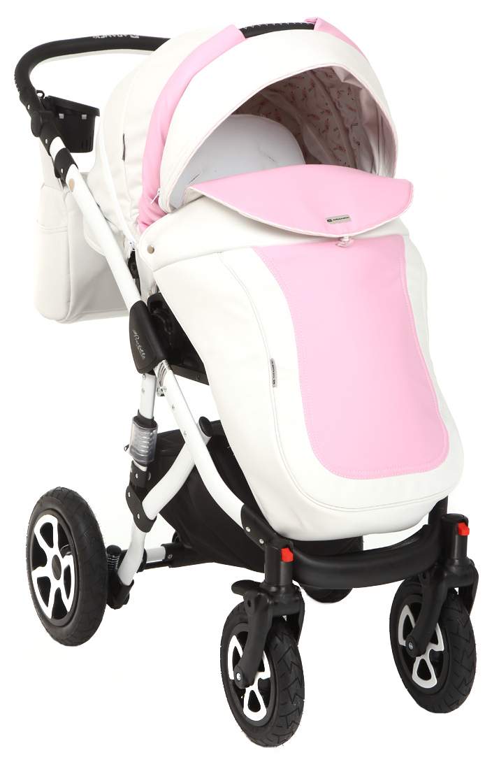 Коляска 2 в 1 Adamex Barletta ECO (кожа белая, розовый 326S)