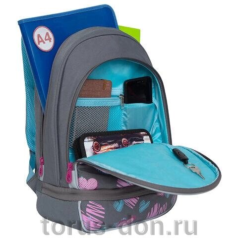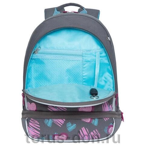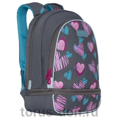 Рюкзак GRIZZLY школьный, анатомическая спинка, для девочек, "Сердечки", 40х29х17 см, RG-169-2/1
