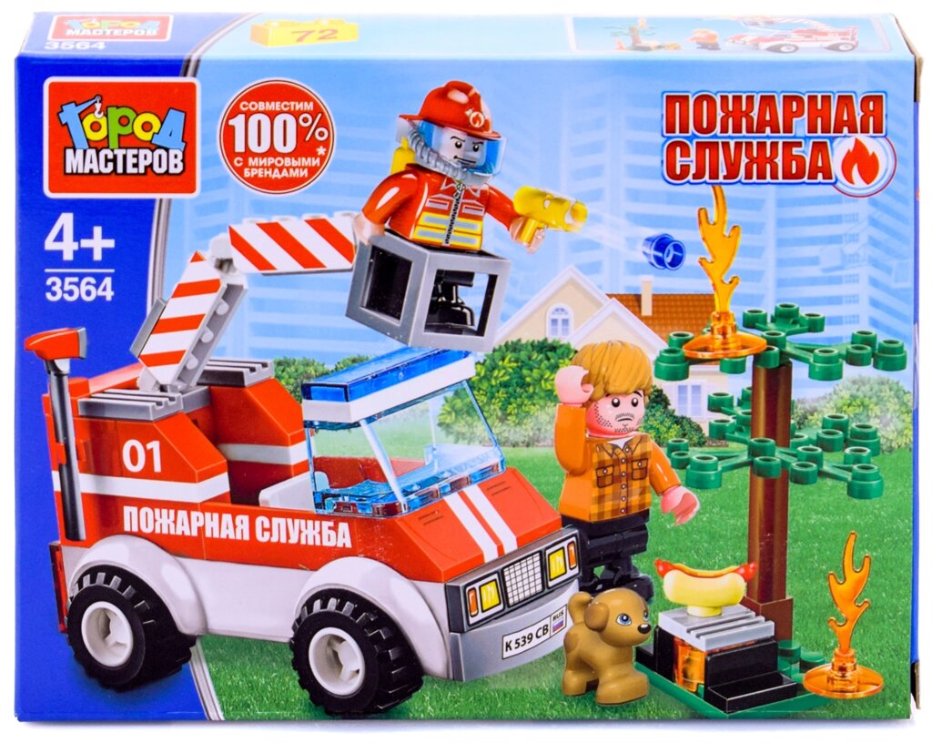 Конструктор пластмассовый "пожар в лесу", с фигурками, 72дет. кор. 3564-BL (Город мастеров)