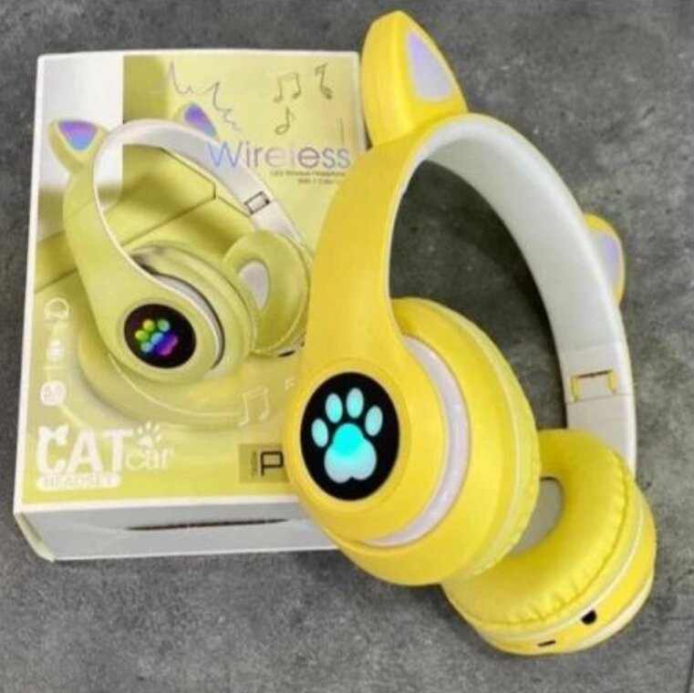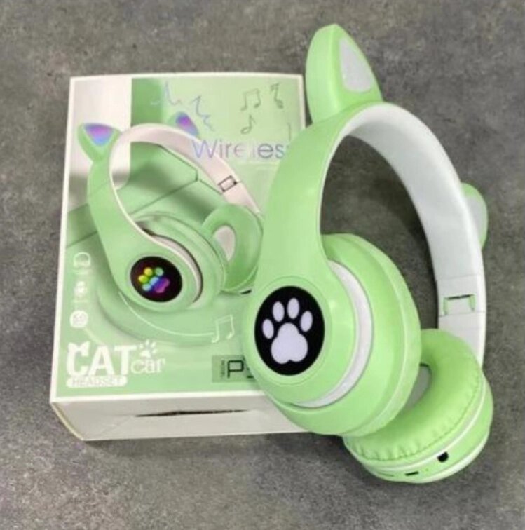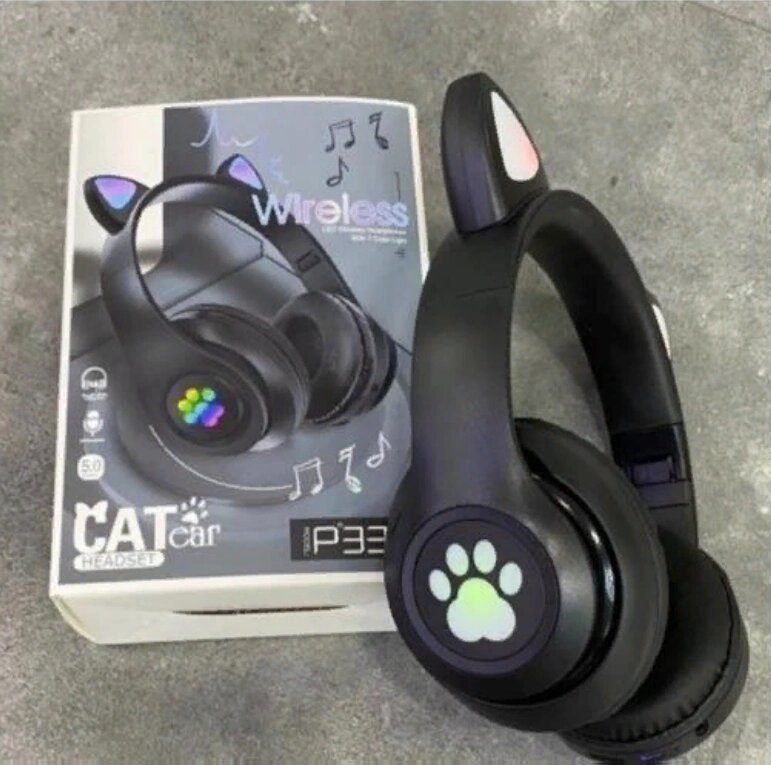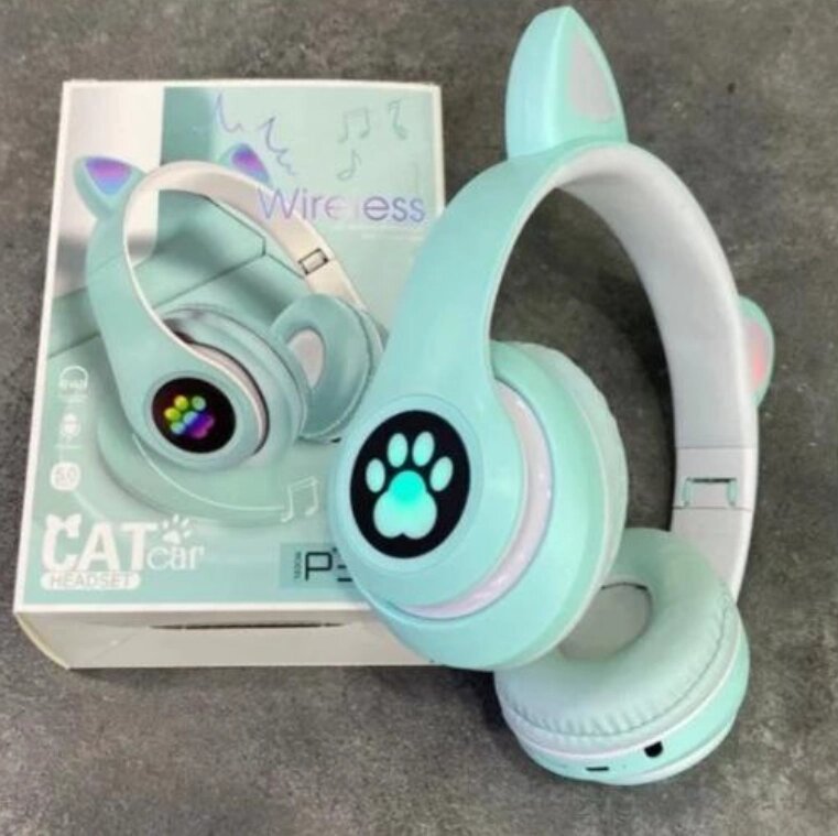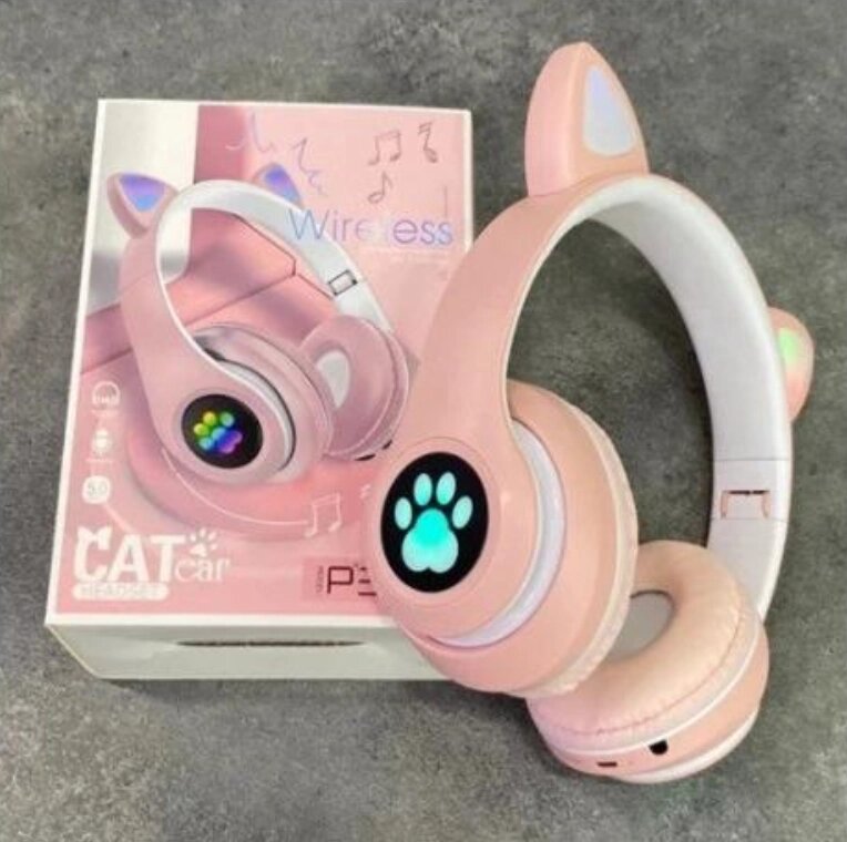 Наушники беспроводные детские Cat P33M с ушками LED+Светящиеся уши (Розовые)