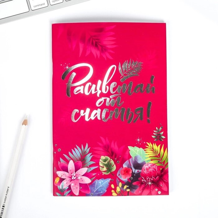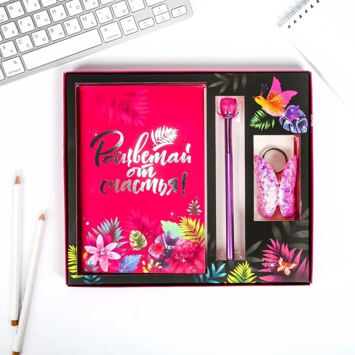 Подарочный набор "Расцветай от счастья! тетрадь, ручка, брелок