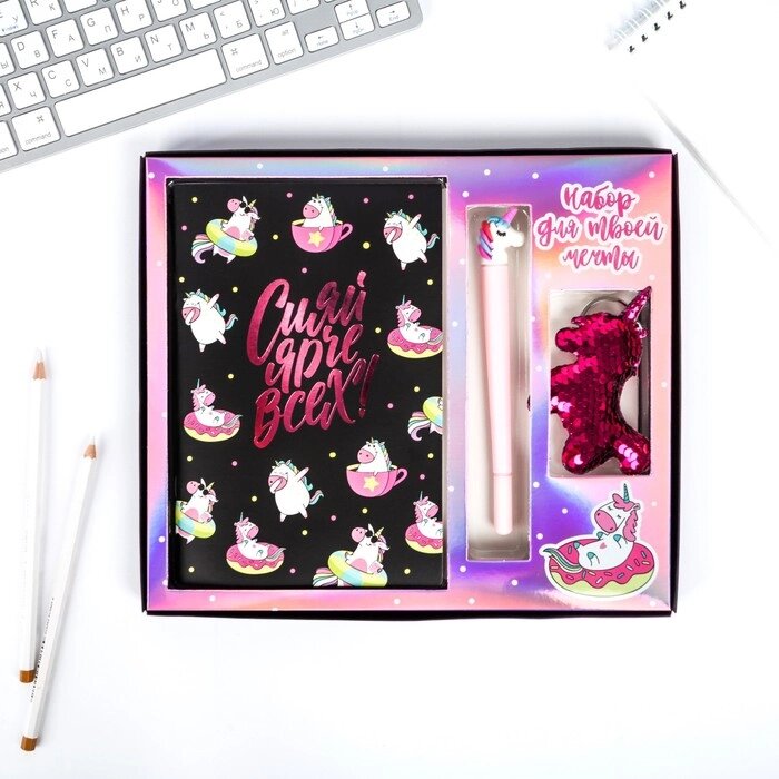 Подарочный набор "Сияй ярче всех! тетрадь, ручка, брелок