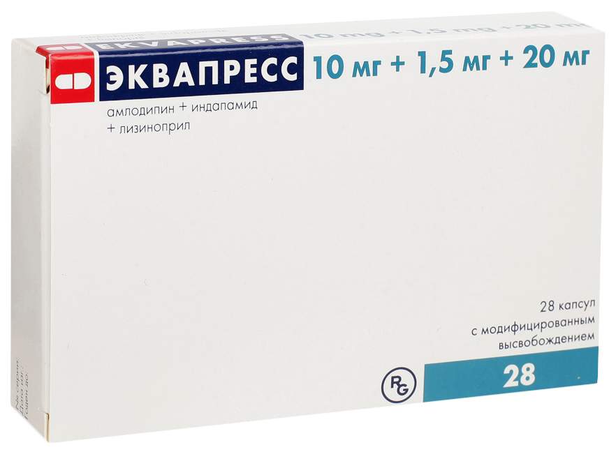 - Рекомендации по приему (дозировка) препарат принимают внутрь, независимо от приема пищи, предпочтительно утром, в одно и то же время каждый день, комбинированные препараты с фиксированными дозами не рекомендуются для начальной терапии, препарат Эквапресс назначается взрослым пациентам, у которых достигнут адекватный контроль АД на фоне приема лизиноприла, амлодипина и индапамида, которые пациент принимает одновременно в тех же дозах, что и в комбинированном препарате: амлодипин 5 мг, индапамид 1,5 мг, лизиноприл 10 мг (Эквапресс 5 мг + 1,5 мг + 10 мг), амлодипин 10 мг, индапамид 1,5 мг, лизиноприл 20 мг (Эквапресс 10 мг + 1,5 мг + 20 мг), амлодипин 5 мг, индапамид 1,5 мг, лизиноприл 20 мг (Эквапресс 5 мг + 1,5 мг + 20 мг), рекомендуемая доза - 1 капс./сутки, максимальная суточная доза - 1 капсула