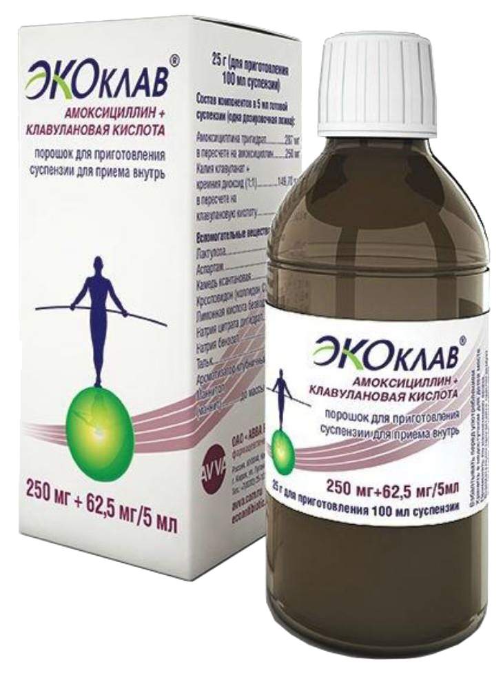 - Серия Экоклав 250 мг+62.5 мг/5 мл