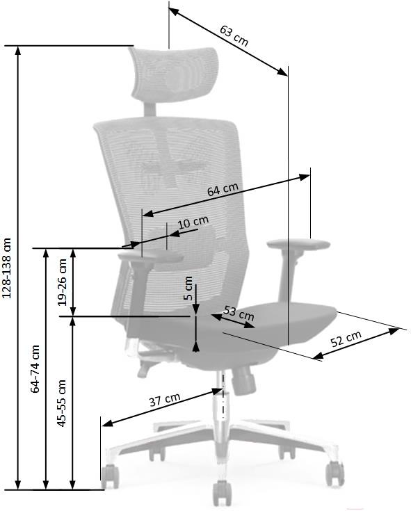 - Регулировка высота сиденья, высота подлокотников, высота подголовника, регулировка поясничной поддержки