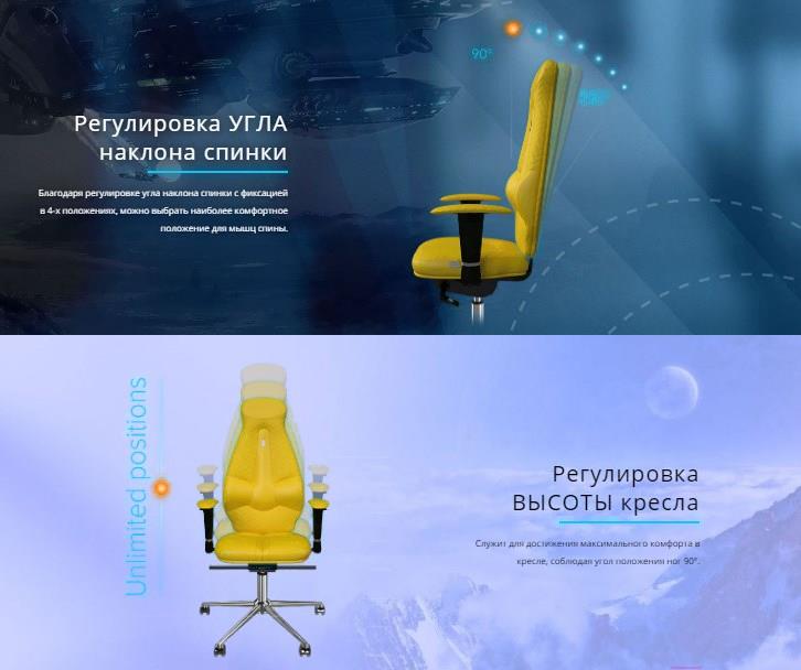 • Регулировка высота сиденья, высота спинки, наклон спинки, высота подлокотников ( с фиксацией в 5 положениях), глубина сиденья, наклон сиденья