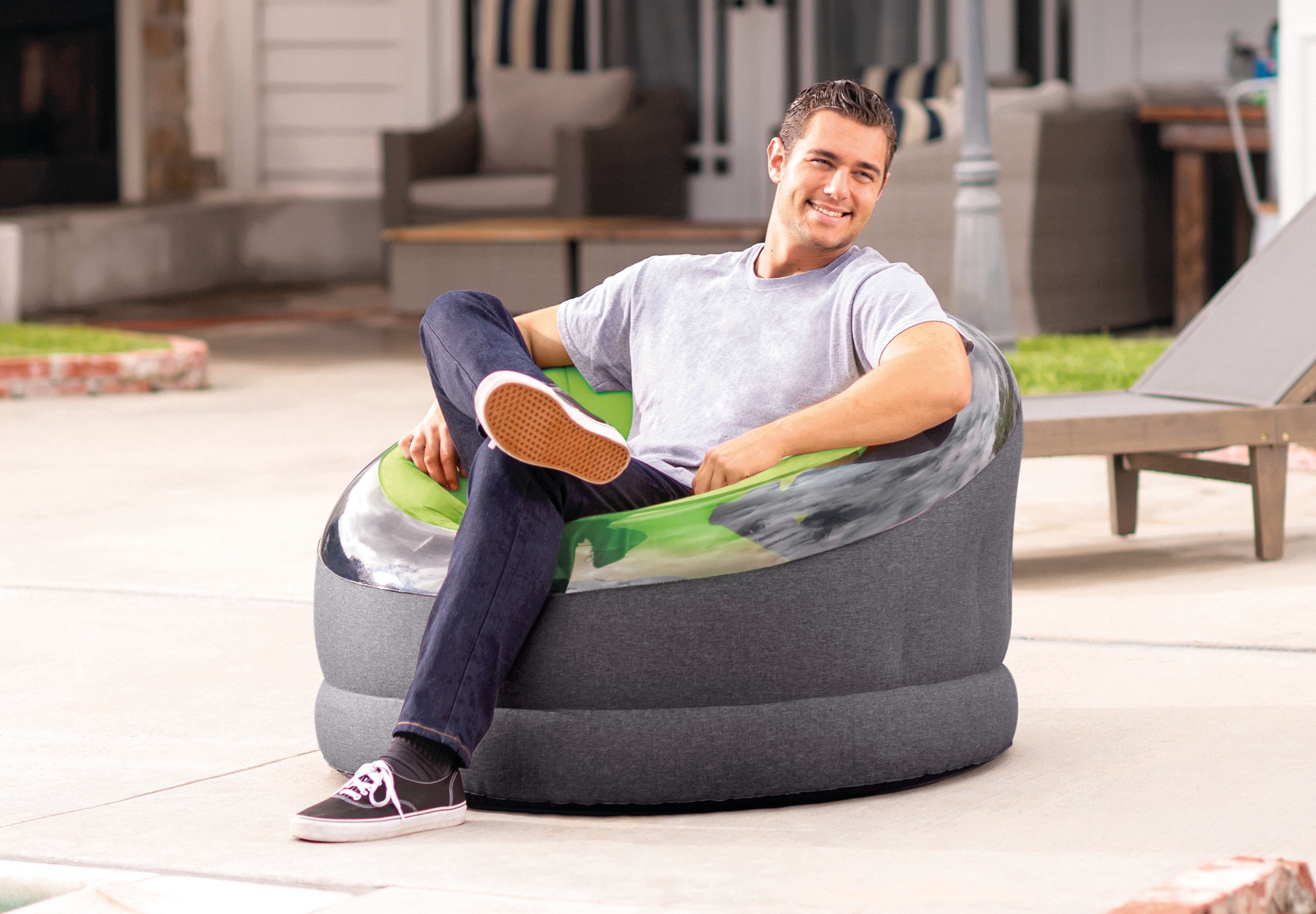 Надувной стул Intex 66582NP, синий/черный/желтый/зеленый, 1120x1090 мм