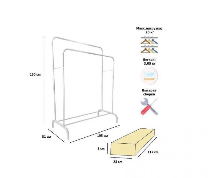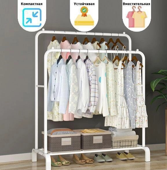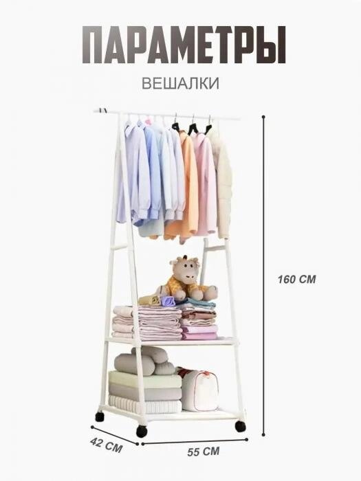 Напольная гардеробная вешалка для одежды на колесиках СКР