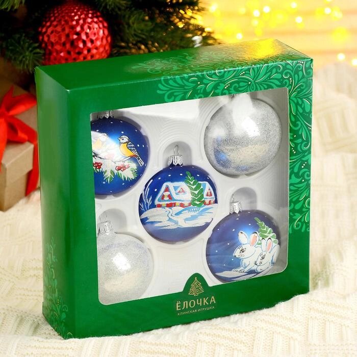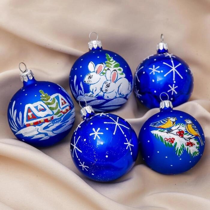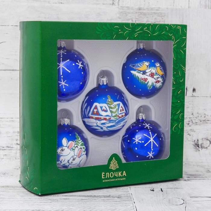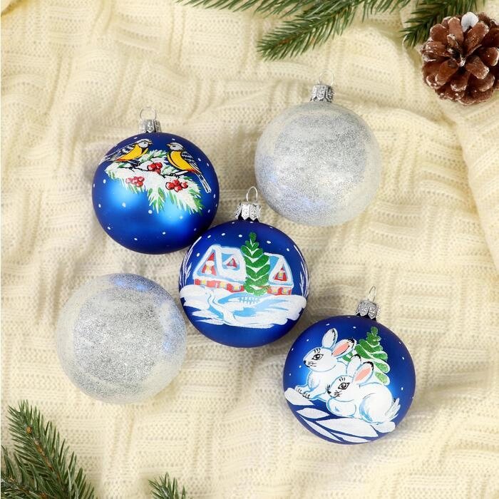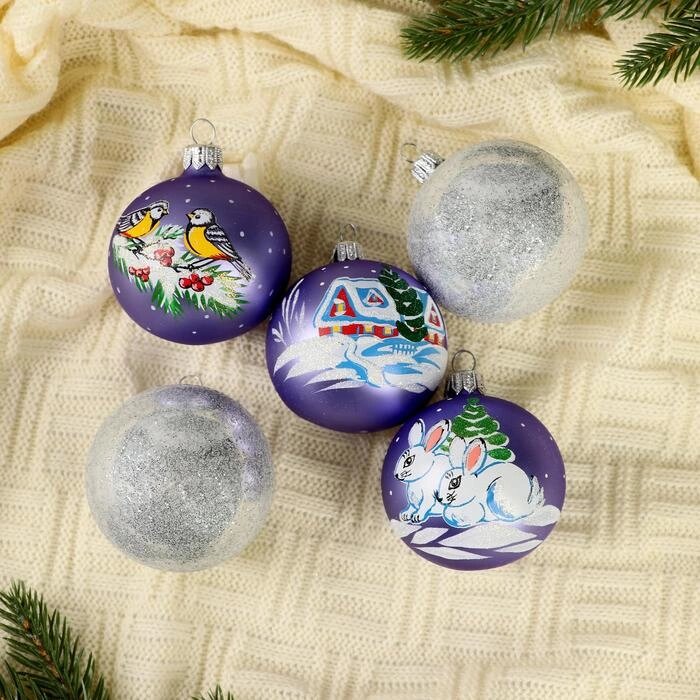 Набор новогодних шаров "Стужа"набор 5 шт) 6 см