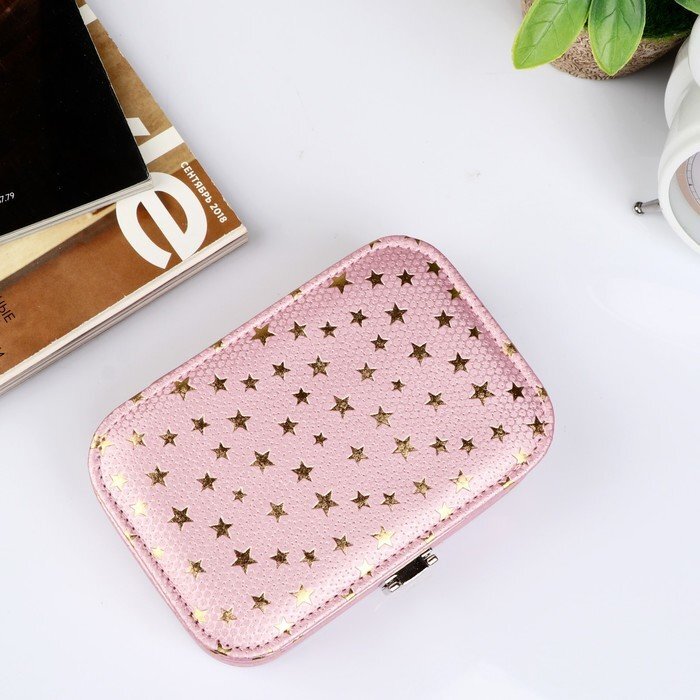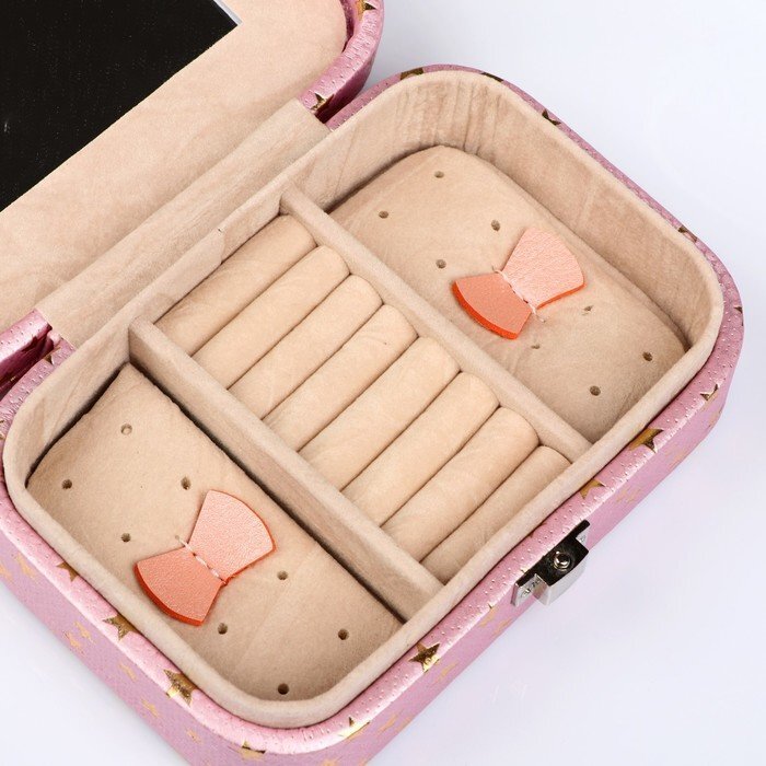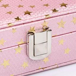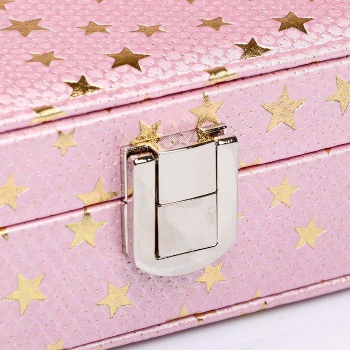 Шкатулка кожзам для украшений "Золотые звёзды" розовая 5х15х10 см